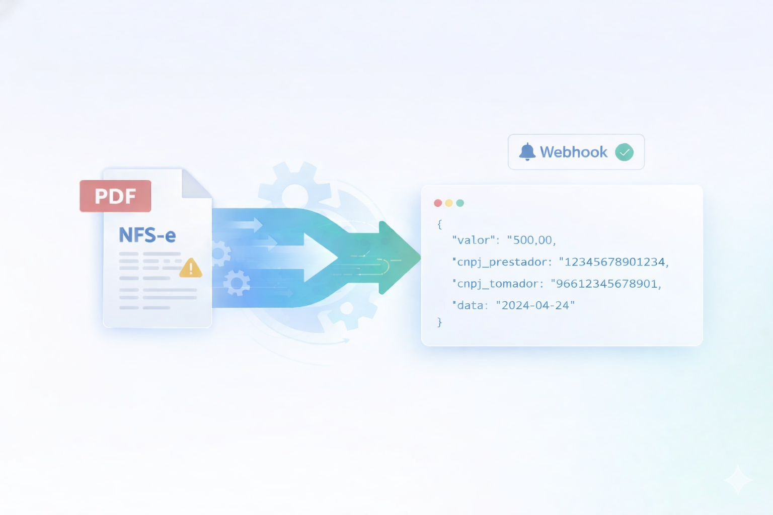 NFS-E DataEnvie o PDF da nota fiscal de serviço e receba os dados estruturados via API, com processamento assíncrono e notificação por webhook.